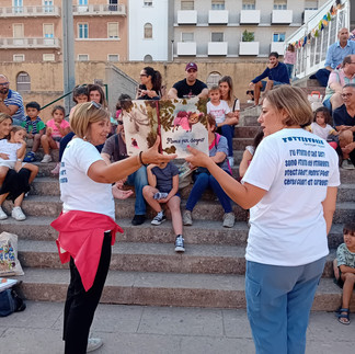Il passaggio dalla formazione in presenza alla prassi è avvenuto in piazza Blablà, quando famiglie in transito hanno potuto ascoltare le insegnanti lettrici.
